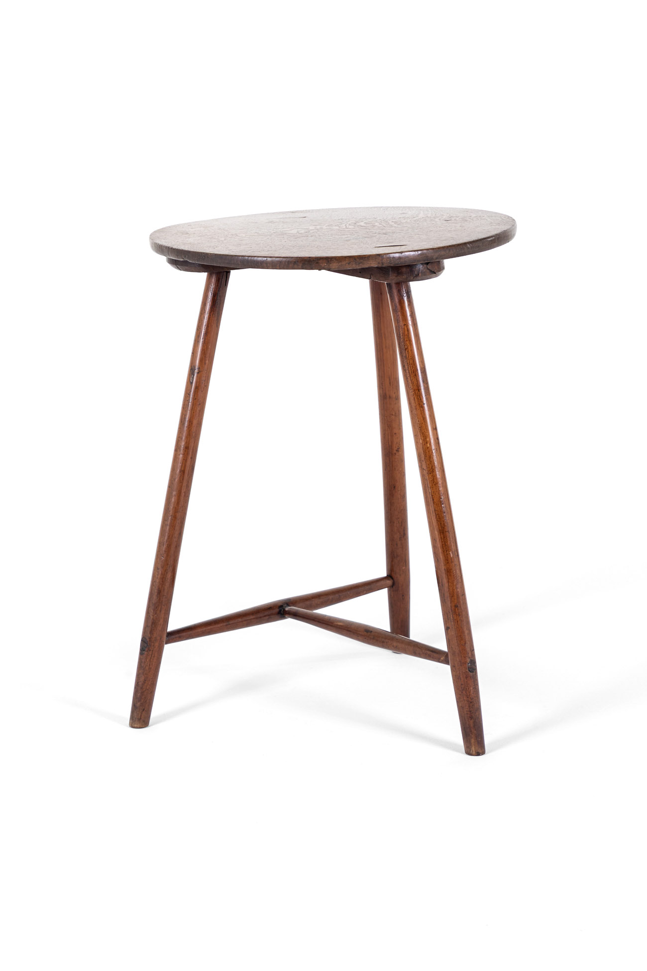 The splayed legs in oak are united by a wonderful T-shaped stretcher.