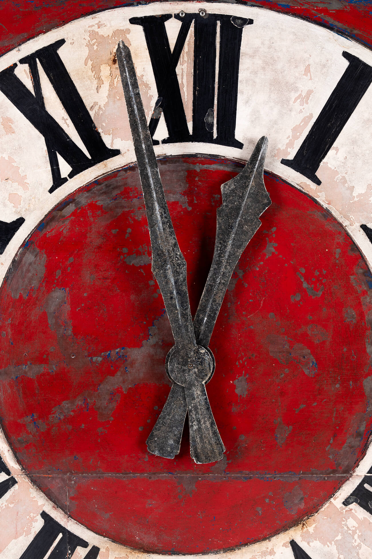 The dial on the face is hand-painted in black, white, and red, the original colours fading over time to create the most wonderful patina.