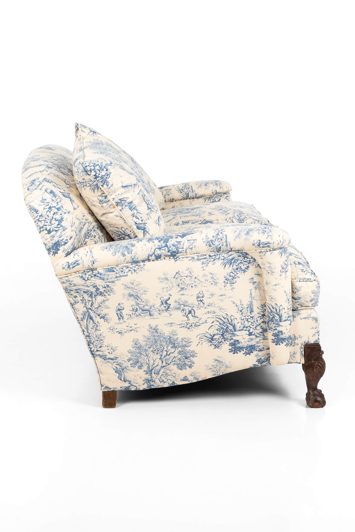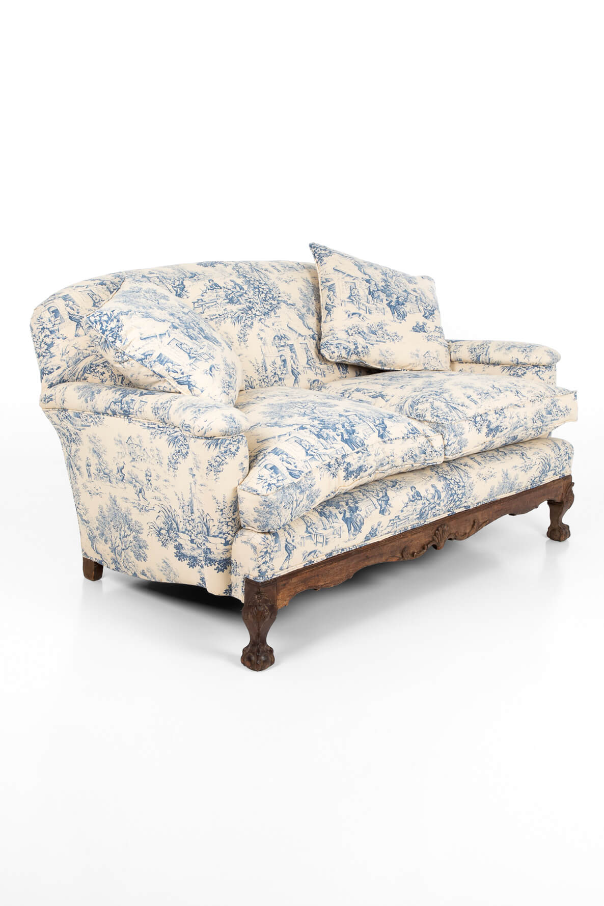A wonderful late 19th century walnut framed sofa, with claw and ball feet over a humpback frame.
