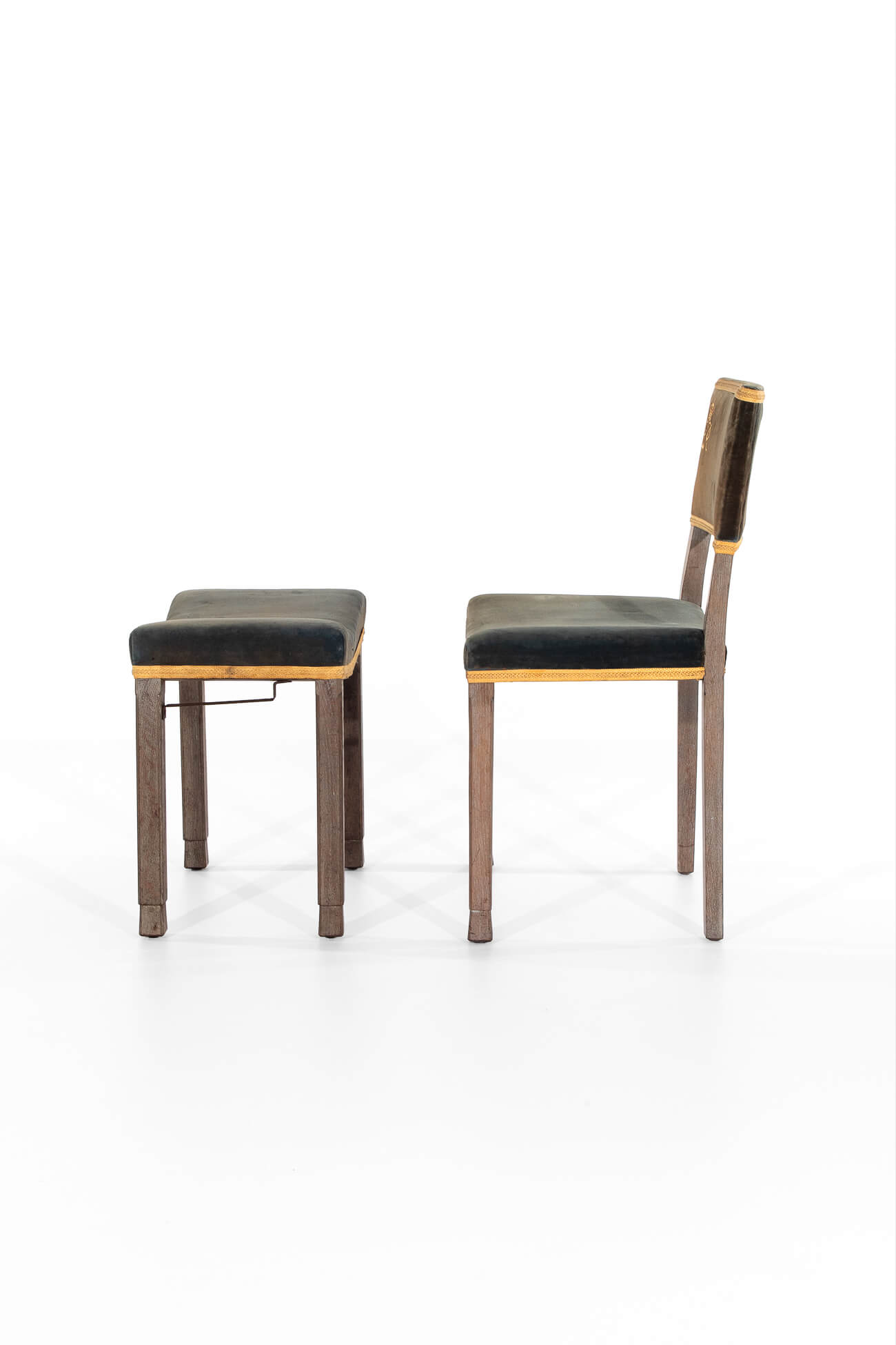 A George VI 1937 Coronation chair and stool designed by Edward Barnsley for the ceremony at Westminster Abbey, London on 12th May 1937.