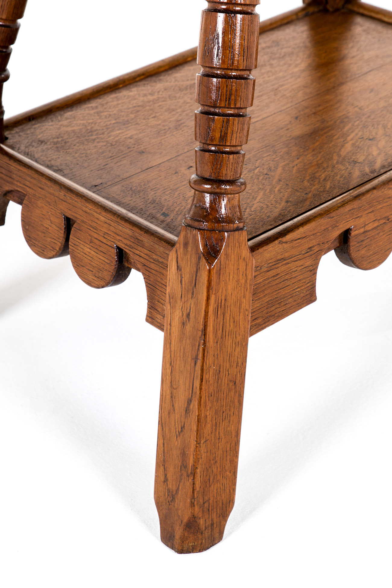 The table in the Gothic manner displays a generous top raised on four turned supports complemented by a second tier.