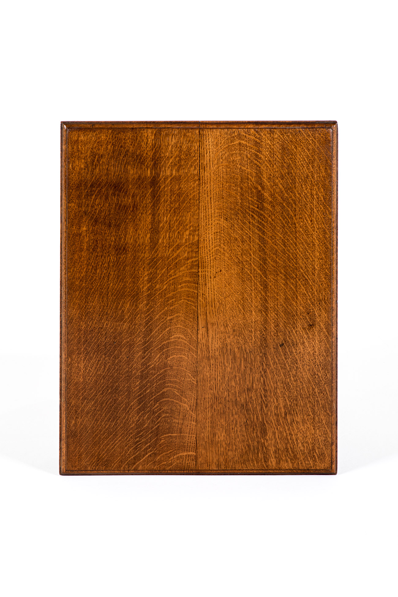 The latter is adorned with a geometrical design to each side and finished on sturdy carved block feet.