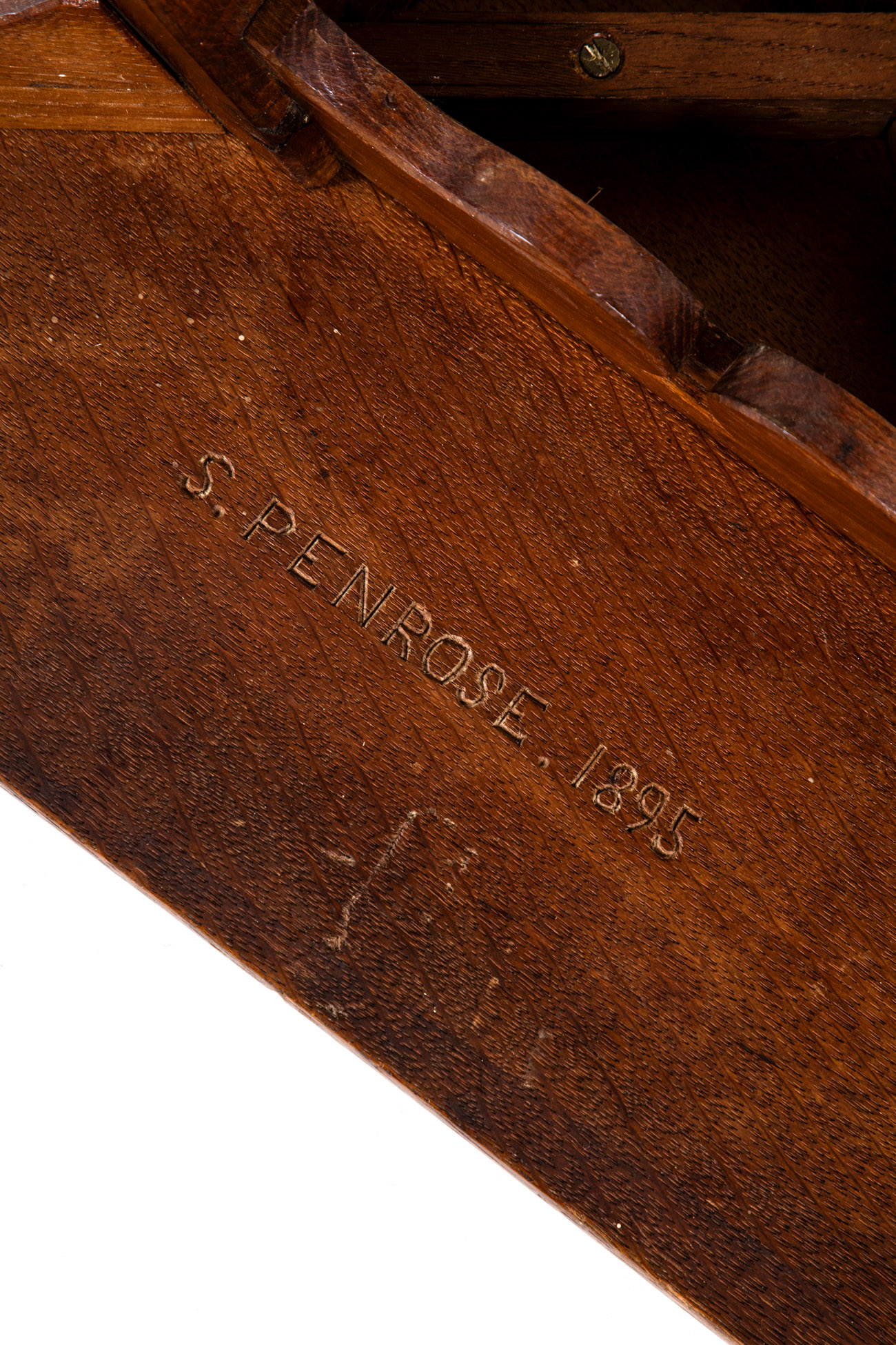 The underside of the table top is carved with the date 1885 and the inscription S.Penrose.