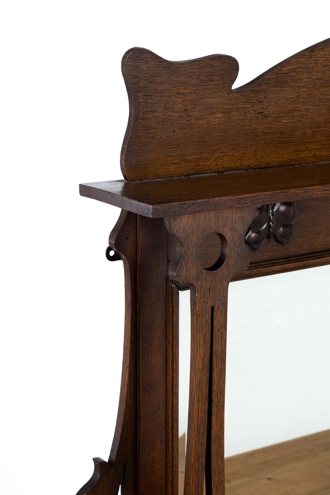 Original bevelled glass plate and carved tulip supports.