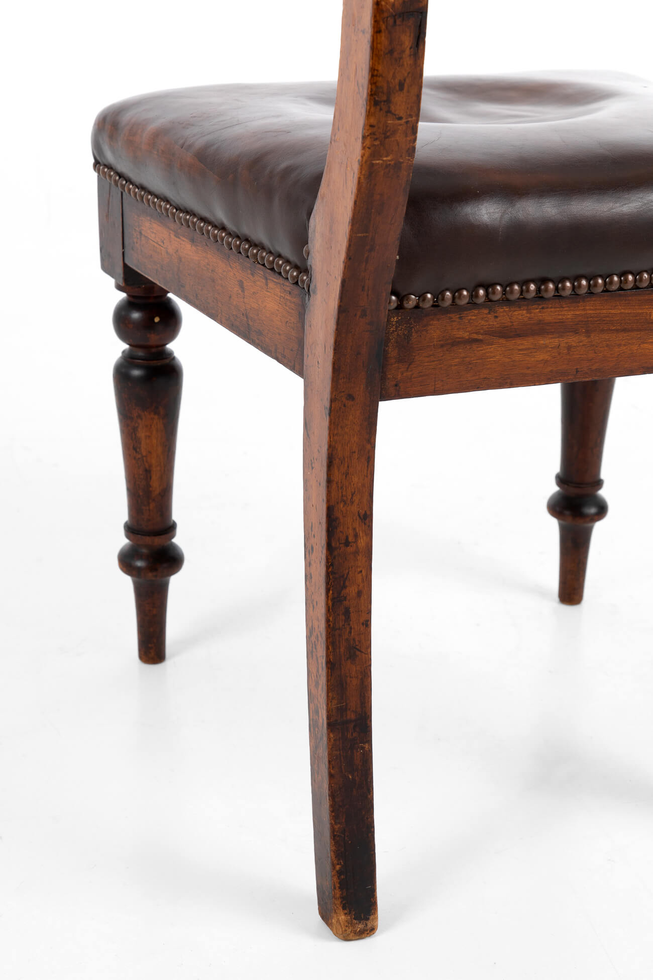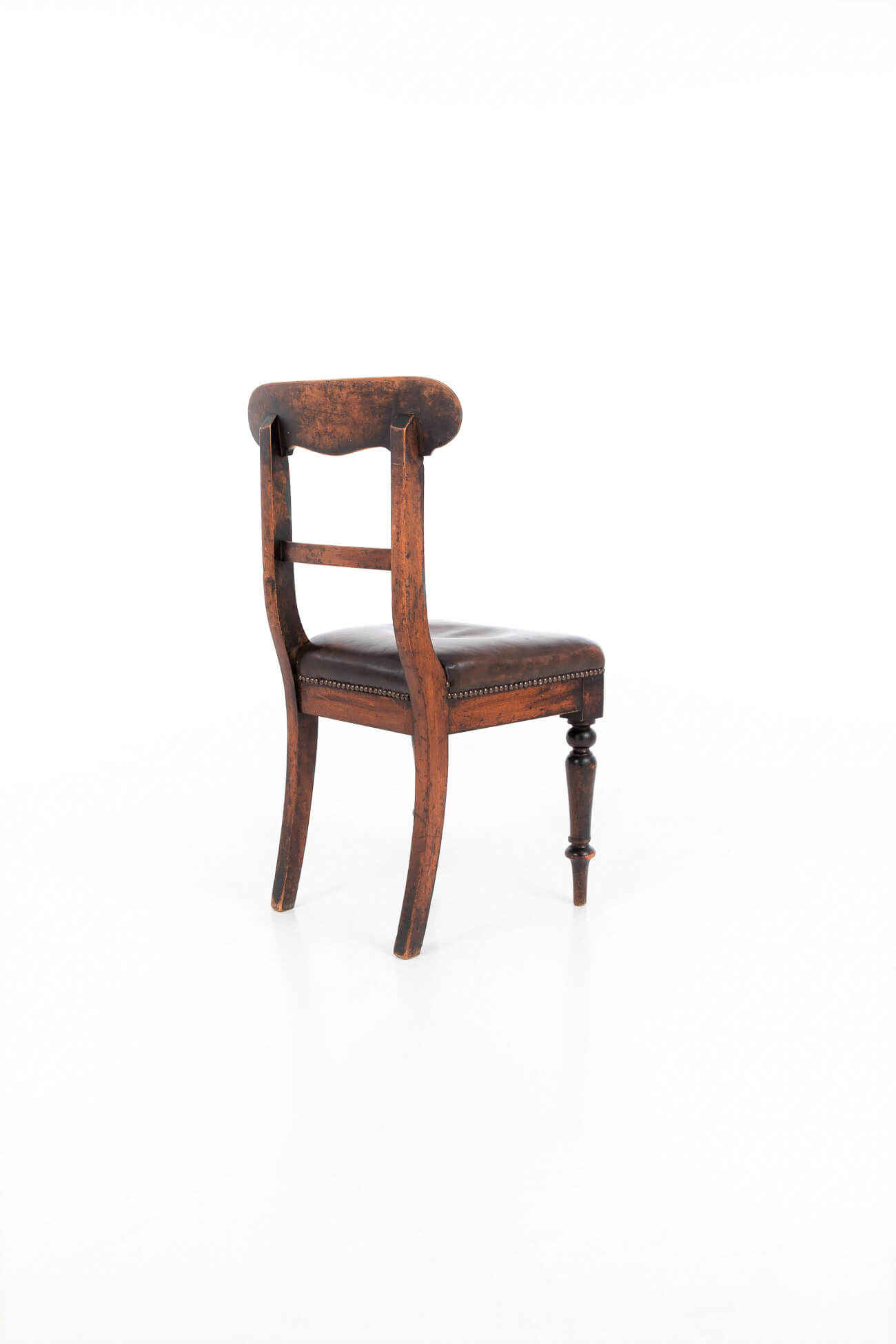 Original leather seat with turned front legs and sabre back legs.