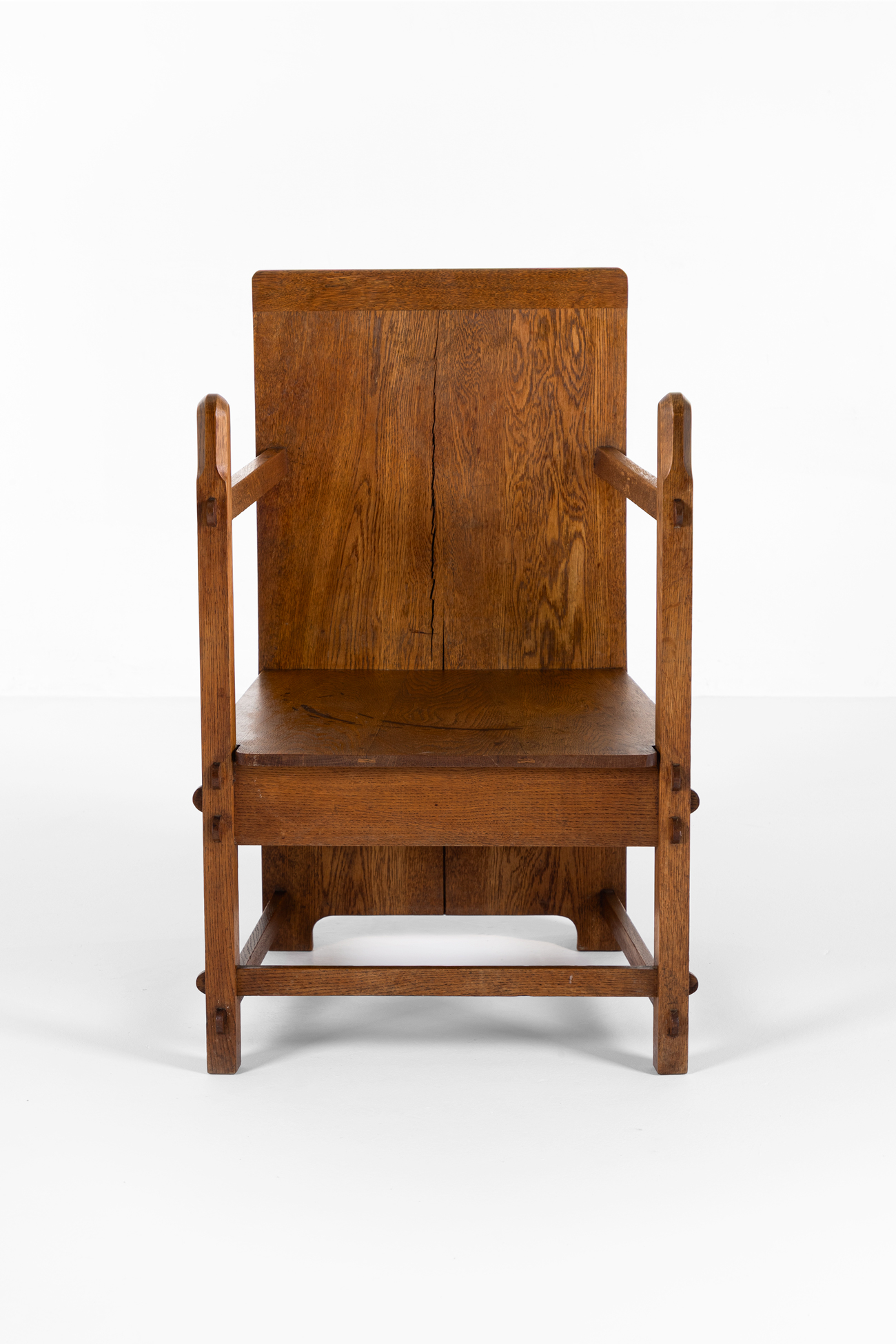 An oak Traditionalist chair from the Amsterdam school of designers and architects.