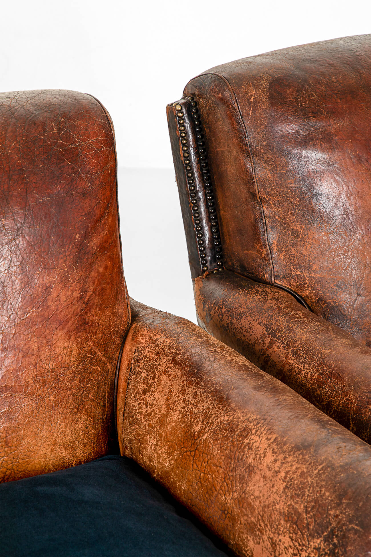 Pair of French Leather Studded Club Chairs