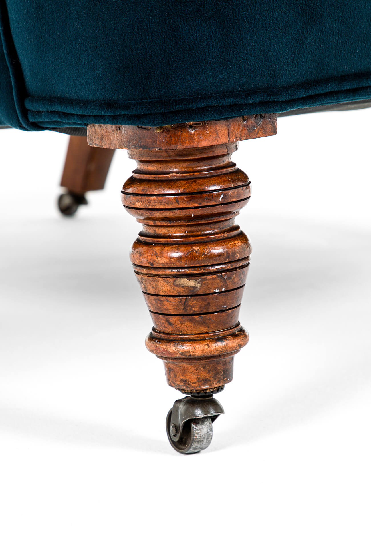 The chair is raised on beautifully turned mahogany legs and finished on brass castors.