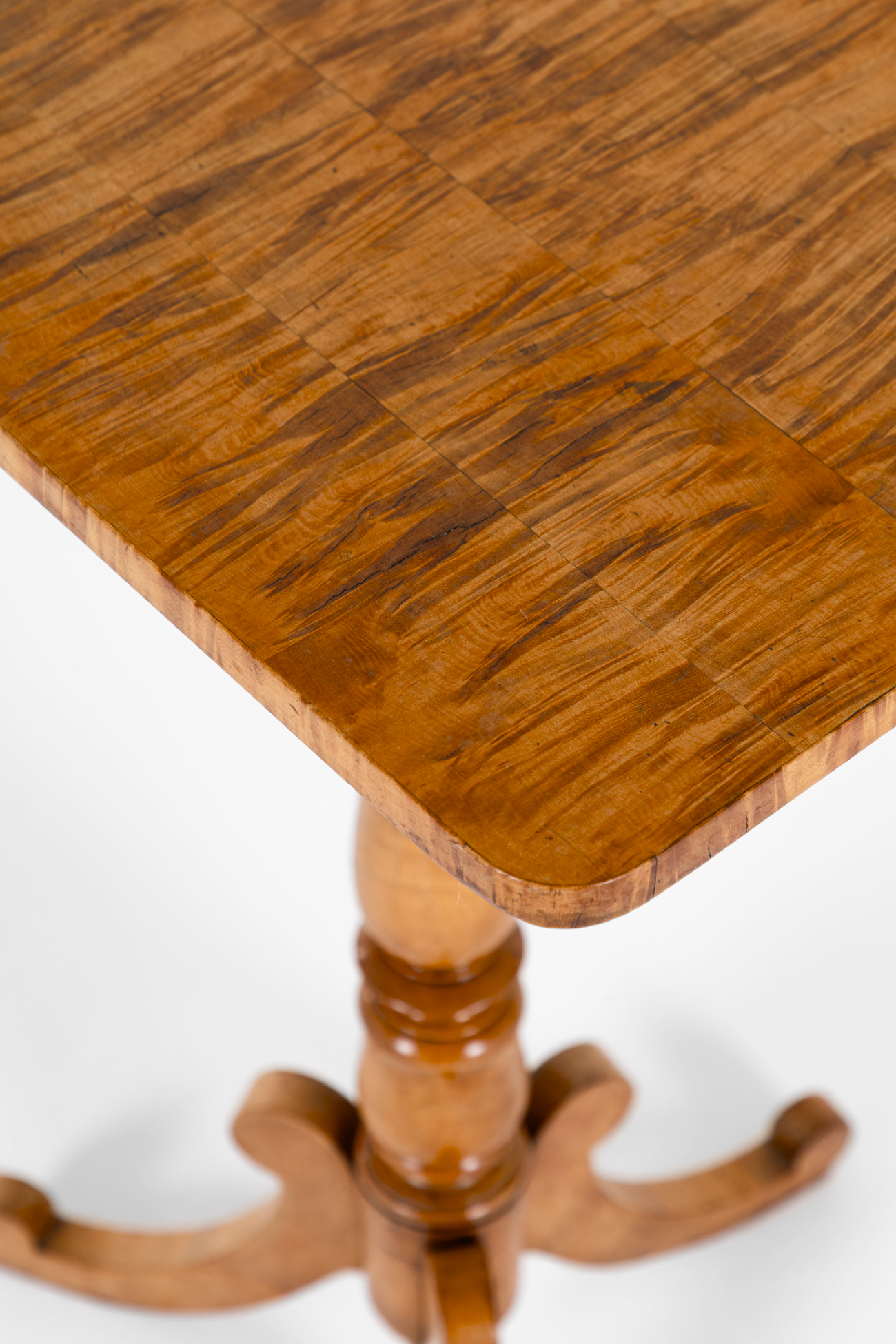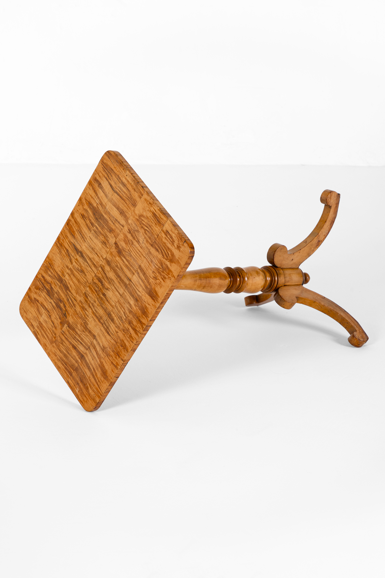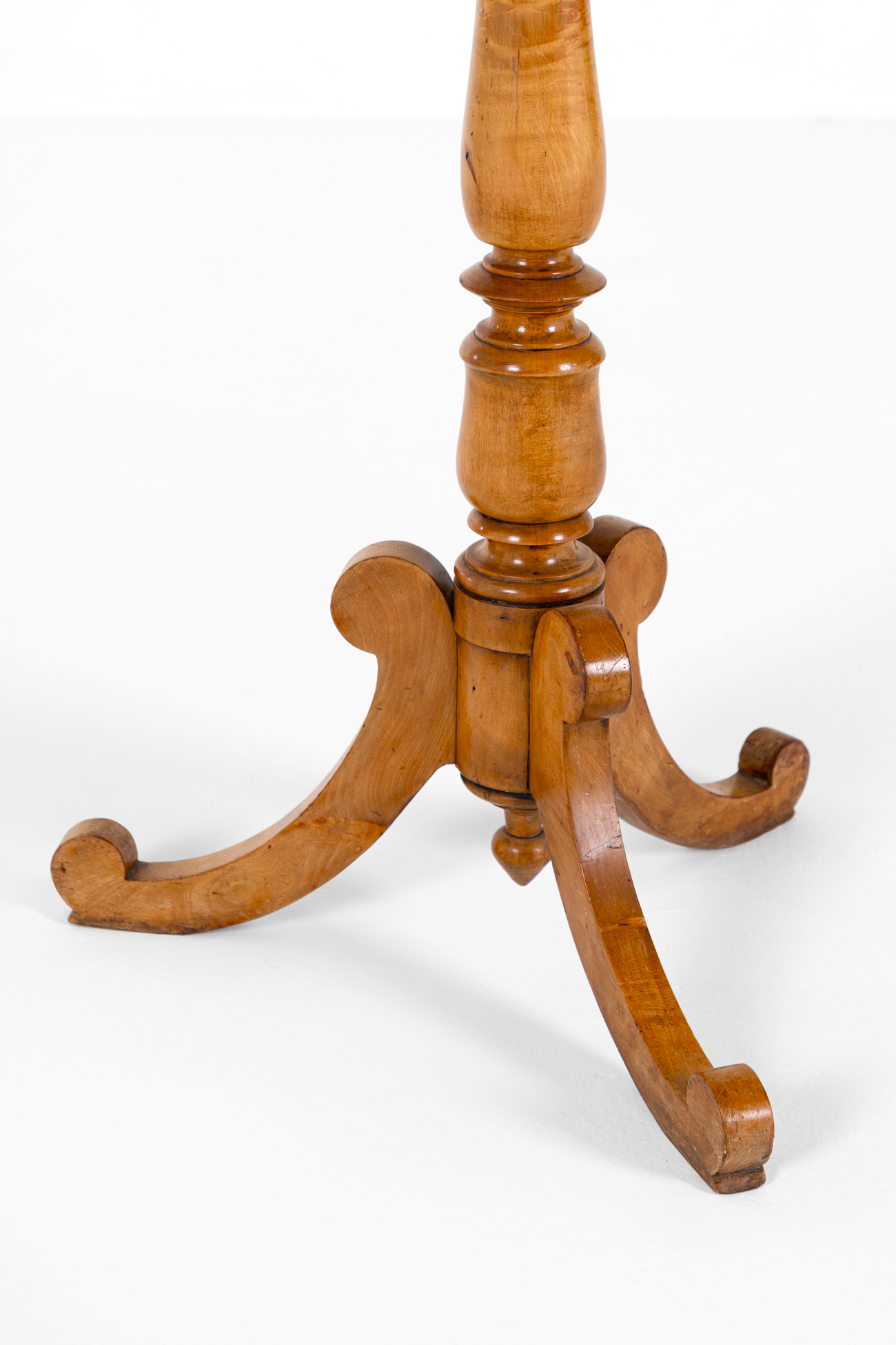 The top is raised on a baluster turned column on a trio of cabriole legs.