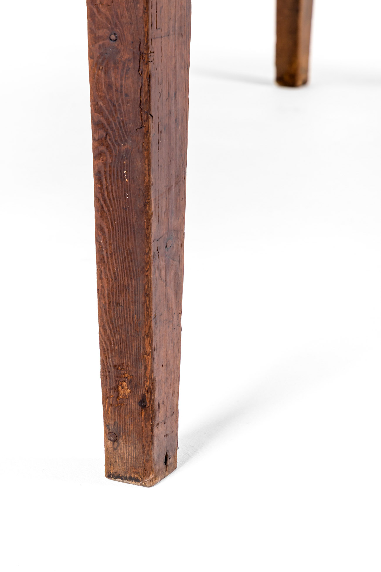 A large 19th century characterful pitch pine preparation table with a sizeable plank top.
